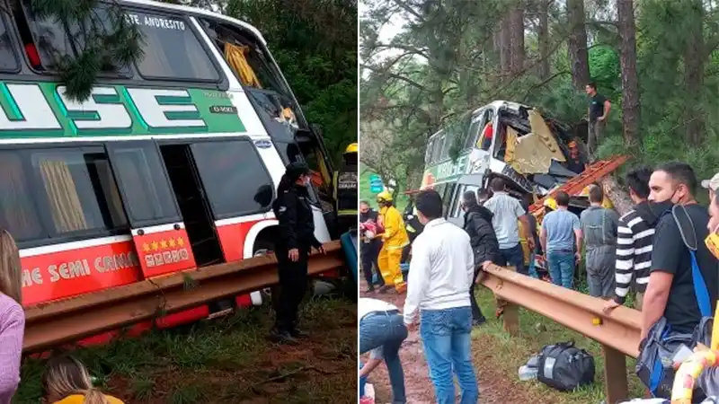 Se trata de un colectivo de media distancia de la empresa Kruse S.A. que tuvo el accidente en cercanías de la localidad e Gobernador Roca, a la altura del kilómetro 1406. El colectivo, que llevaba unos 25 pasajeros, tenía como destino final Puerto Iguazú y salió desde Posadas.