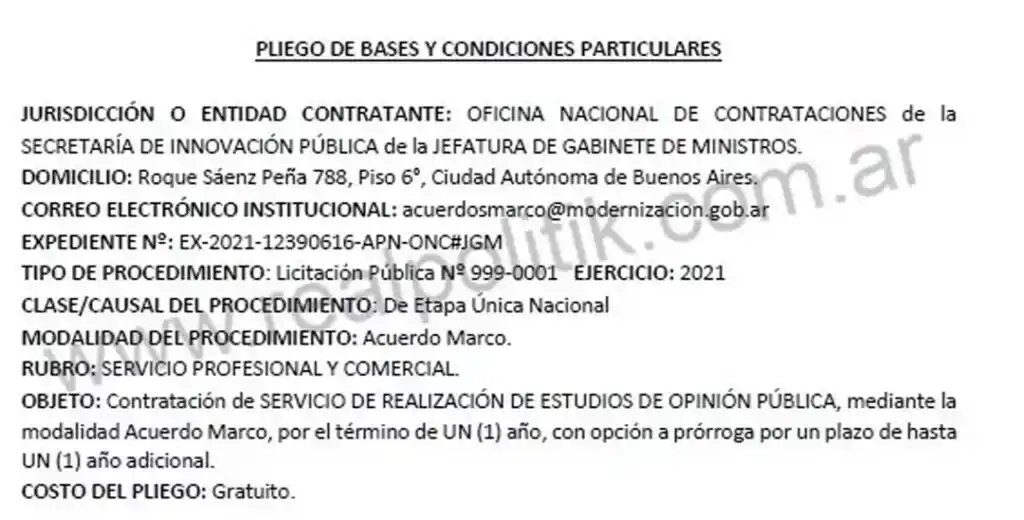 En este escenario, la jefatura de Gabinete que preside Santiago Cafiero lanzó la licitación pública Nro. 999-0001-LPU21, que prevé un acuerdo marco para la contratación del servicio de realización de estudios de opinión pública. En pocas palabras, se tratará de 138 encuestas telefónicas, focus groups, entrevistas personales y comunidades de WhatsApp, con el objetivo de sondear a la población.