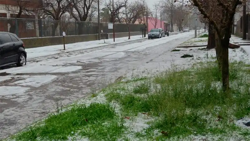 El granizo llenó calles y veredas con una gruesa capa con aspecto similar al de la nieve. Las ráfagas de viento también provocaron daños en viviendas, caídas de gajos de árboles y anegamientos de calles de tierra.