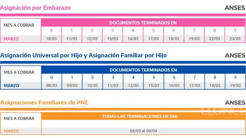 Las Asignaciones Familiares de PNC se cobran entre el 8 de marzo y el 9 de abril para todos los documentos.