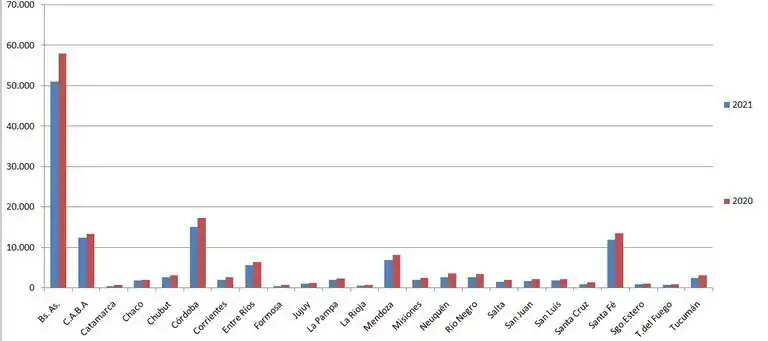 En tanto, si se lo compara con diciembre de 2020, mes en el que se registraron 141.940 unidades vendidas, la caída fue de 6,64 por ciento.