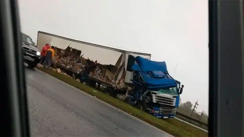 La colisión fue por aproximación, el camión que llevaba verduras chocó al otro por atrás y terminó muy dañado, a tal punto que su carga acabó en el asfalto. No se contaron heridos.