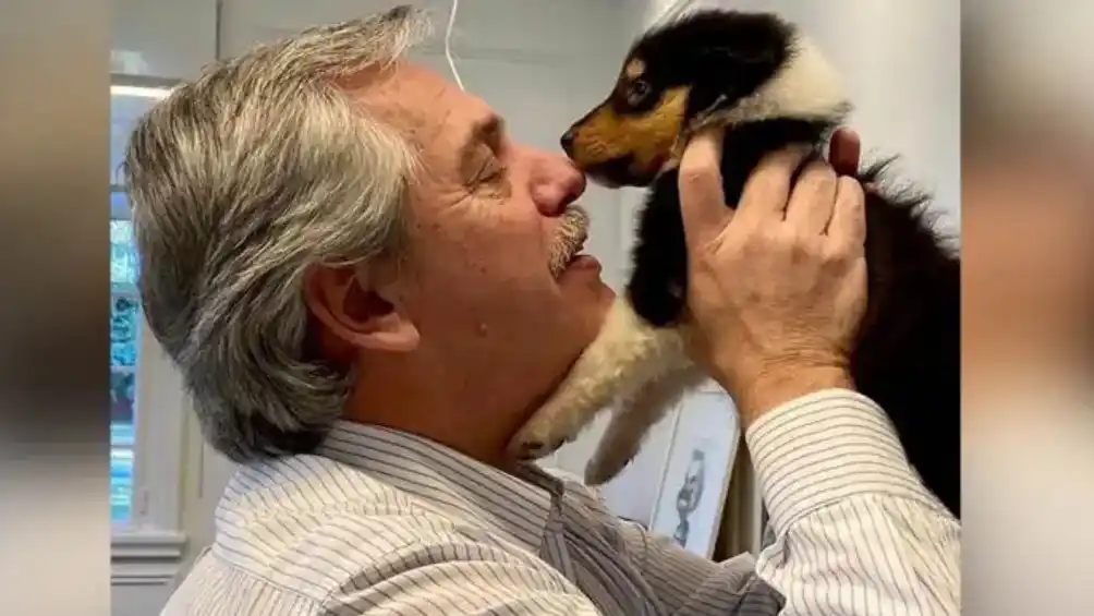 El presidente Alberto Fernández presentó a su nueva mascota "Blue", un cachorro hijo del ya conocido "Dylan".