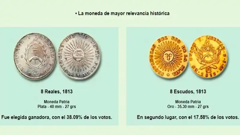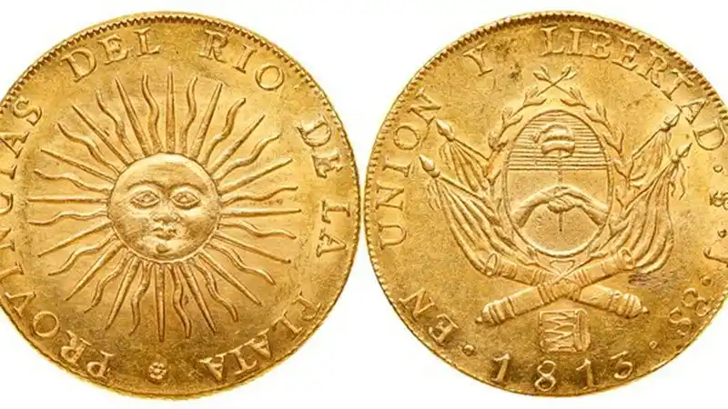 A modo de celebración y de ahondar en la independencia, la Asamblea del Año XIII decidió emitir una moneda de oro y otra de plata siguiendo las normas en materia de ley y peso que las que por entonces regían en el imperio español. Fuente: (ElCronista)