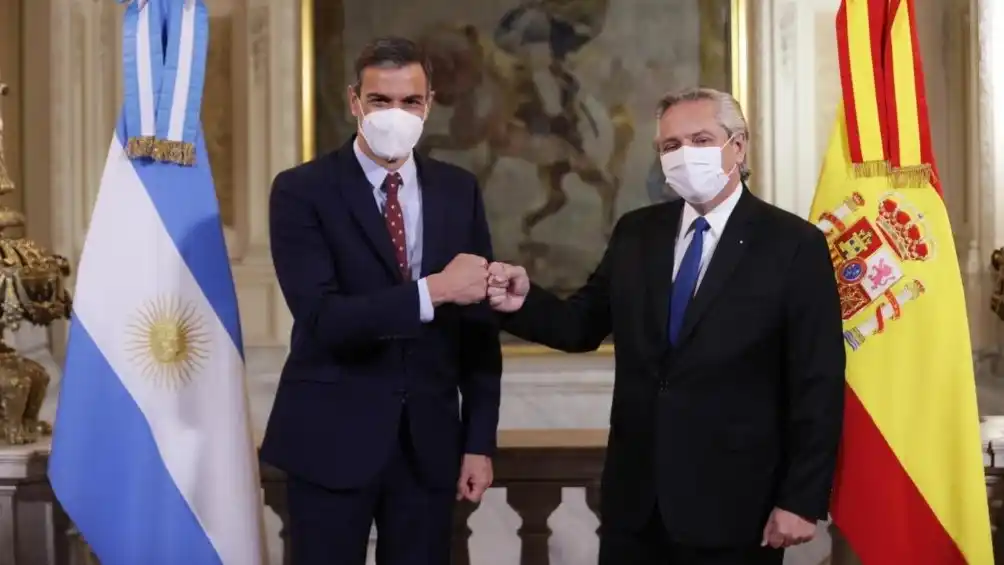 El presidente Alberto Fernández y el jefe de Gobierno español, Pedro Sánchez, ratificaron los vínculos de ambas naciones y llamaron a hacerlos "aún más sólidos" a uno y otro lado del Atlántico para lograr mayores inversiones, una distribución más equitativa de las vacunas contra el coronavirus y el apoyo necesario para que Argentina pueda obtener una reprogramación de los vencimientos de deuda con organismos multilaterales de crédito.