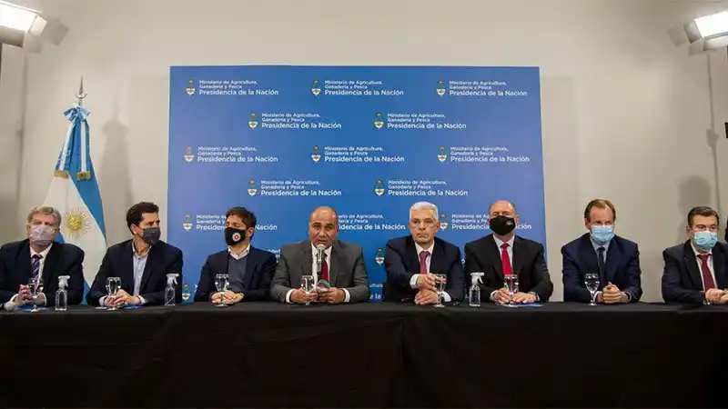 El ministro de Agricultura, Julián Domínguez, el jefe de Gabinete, Juan Manzur, gobernadores de cinco provincias y otros representantes del Gobierno nacional se reunieron con los dirigentes de las cuatro entidades que conforman la Mesa de Enlace, con quienes acordaron avanzar en cambios en materia de financiamiento, la liberación de las exportaciones de carne a China y la conformación de una mesa de trabajo técnica antes de fin de año.