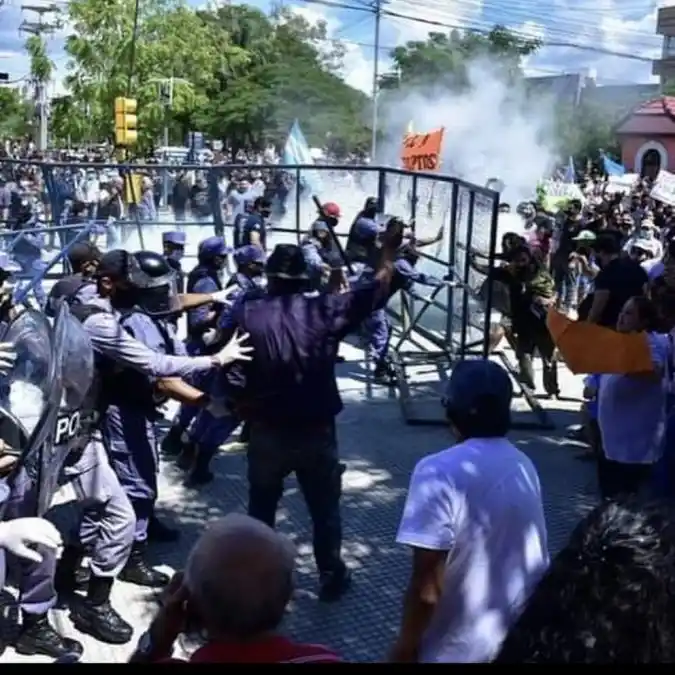 Si bien las protestas comenzaron ayer por la noche en la puerta de la gobernación, este mediodía la situación se puso más tensa con la aparición de los efectivos de seguridad, que intentaron que los manifestantes depusieran su actitud con palazos, balas de goma y gases lacrimógenos.