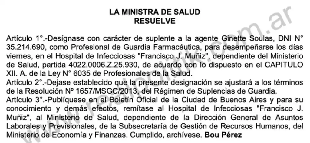 Como si el cargo brindado por Volnovich no fuera suficiente, en el mes de julio de 2019, Soulas fue nombrada en el gobierno que conduce Horacio Rodríguez Larreta para cubrir una vacante en el hospital Francisco Muñiz "los días viernes".