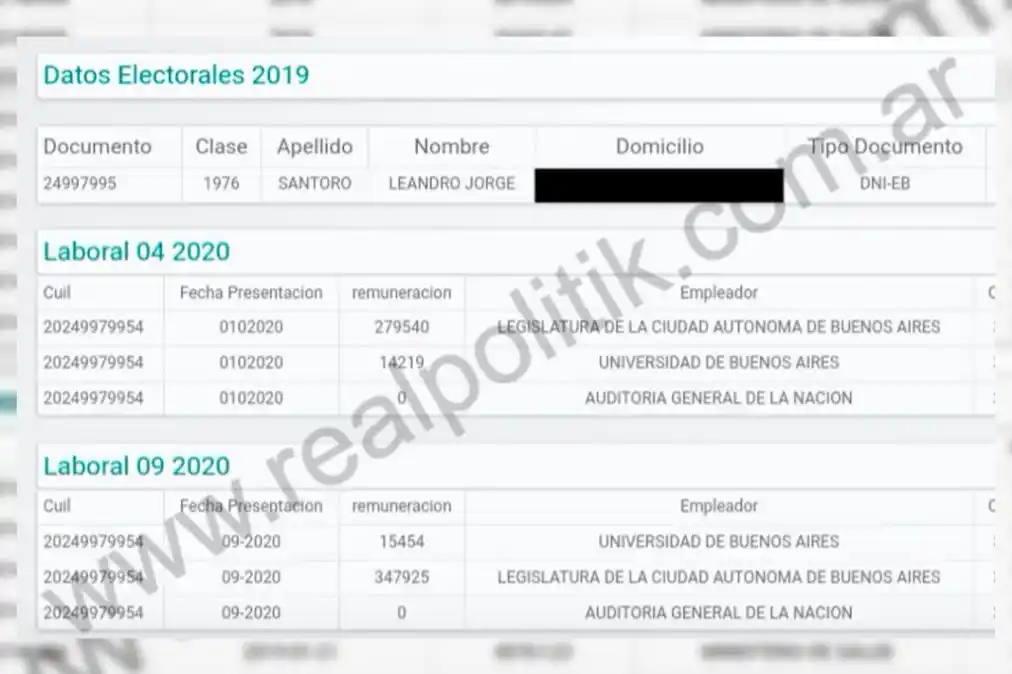 El dato resulta llamativo de por sí, considerando que, a fines de 2019 este medio sacó a relucir que Santoro percibía tres sueldos simultáneos del estado: cobraba como legislador porteño, como docente de la UBA y como empleado de la auditoría General de la Nación. Y aunque hoy no percibe este último sueldo, sí prefirió hacer reserva del cargo y no renunciar.