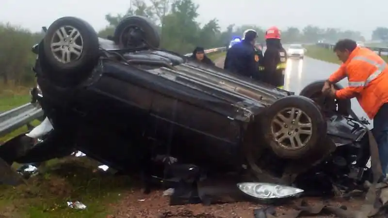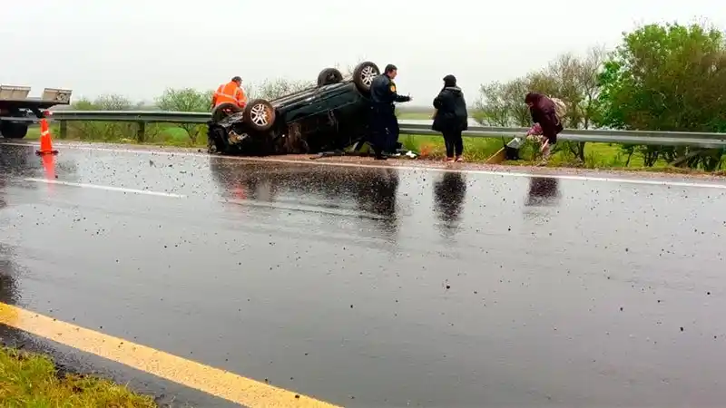 Un accidente ocurrió este mediodía, en el kilómetro 157,5 de la Ruta Nacional 12. En la zona, se presentaban condiciones climáticas adversas con una persistente lluvia y se produjo el despiste y vuelco de un auto, en la mano que tiene sentido de Buenos Aires a Entre Ríos.