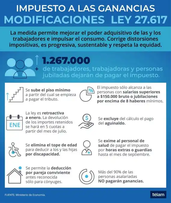 "Más de 1.200.000 trabajadores y trabajadoras en relación de dependencia cobrarán a partir de julio, en cinco cuotas consecutivas, la devolución retroactiva de lo descontado desde enero por el pago de Ganancias"
