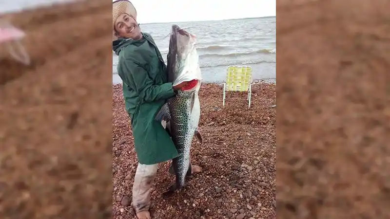 García y su pareja lograron retirar su presa del agua, "a la rastra". "El surubí, cuando traga la carnada, la vomita y la suelta. Y éste largó el anzuelo justo cuando estaba afuera del agua", refirió el hombre.