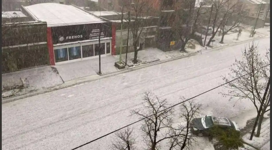 Un fuerte temporal desatado este domingo sobre el centro de la provincia de Buenos Aires la afectó fuertemente y dejó a esa ciudad y a 9 de Julio cubiertas de granizo.