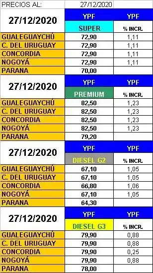 Conoce la nueva escala de valores en Gualeguaychú, Concepción del Uruguay, Concordia y Nogoyá