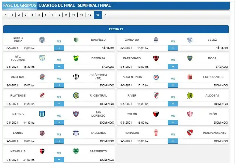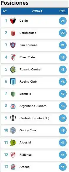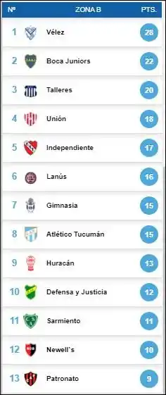 Argentinos (16, +1): Avanza a cuartos con victoria sobre Estudiantes, combinada con derrotas de River, Central y Racing más empate o derrota de Banfield.