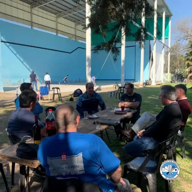 Las autoridades de la pelota argentina en el frontón de Avda. Illia y Eva Perón donde entrenó este fin de semana la Selección Argentina.