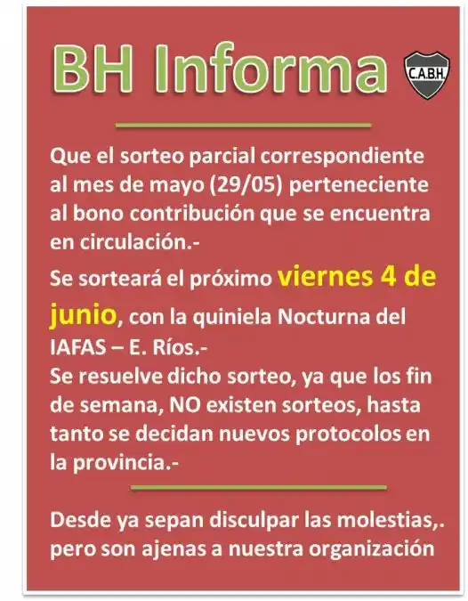 El sorteo parcial del bono contribución que se debía realizar el 29/05, quedó postergado para el viernes 4 de junio - Sorteo Nocturno IAFAS Entre Ríos.