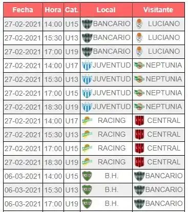 Los encuentros se disputan en los horarios de U17 (14:00 hs.), U13 (15:30 hs.), U15 (17:00 hs.) y U19 (18:30 hs.)