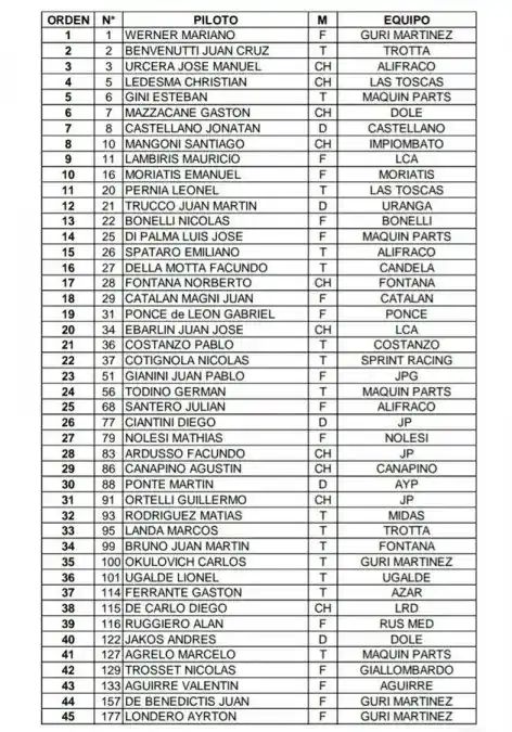 Concordia tiene 45 pilotos inscriptos para este fin de semana. Agustín Canapino (Chevrolet) es el actual líder mientras que M. Werner buscará descontar puntos.