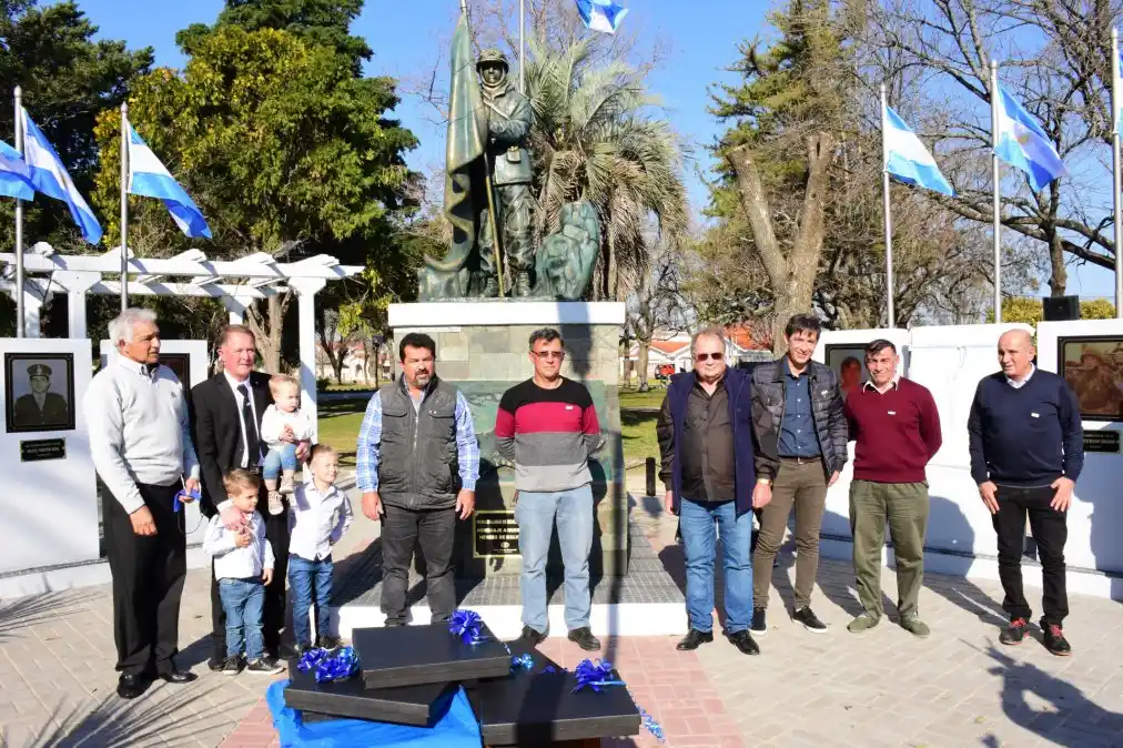 En un emotivo acto, que se dio en la plaza principal de Galarza, acompañamos al intendente Fabian Cabesa Menescardi, en la inauguración de un monumento realizado por la artista plástica Valentina Fernández y seis monolitos que resaltan la figura de los veteranos de Malvinas hijos de esa ciudad, que estuvieron todos presentes en el acto junto a sus familias.
