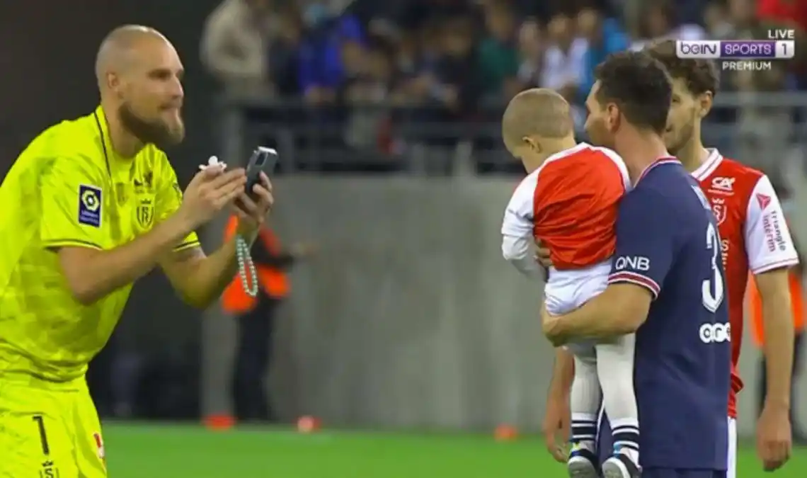 El arquero serbio Predrag Rajkovic no aguantó su "cholulismo" y no quiso dejar pasar la oportunidad de ubicar a su hijo en los brazos de Lionel Messi y sacarle una foto. Fue, claro, en pleno campo de juego segundos después del final del partido que PSG le ganó a Reims por la Liga francesa de fútbol.