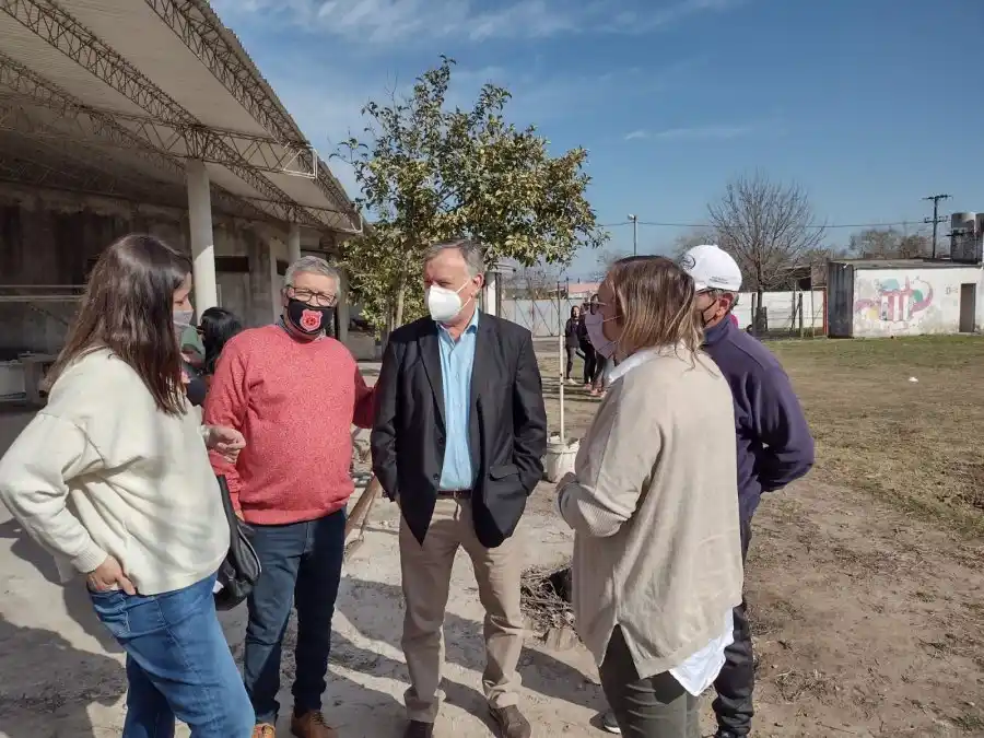 Las autoridades provincial junto al presidente de la Liga Rubén Garibotti en Barrio Norte. Esta institución recibiría un aporte de 600 mil pesos para la continuación de las obras encaradas.