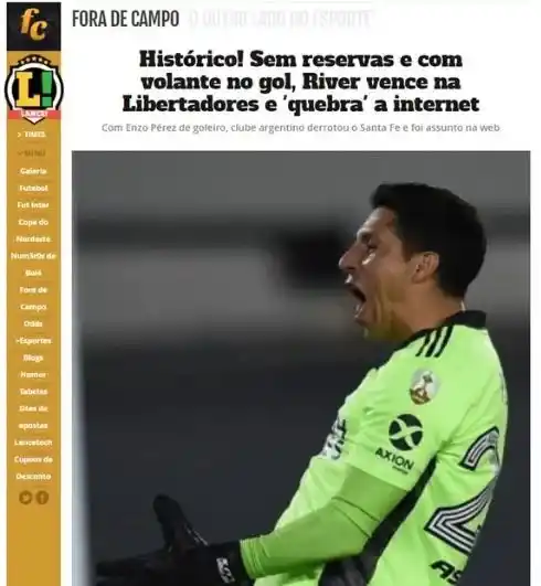 As y Abc, a su vez, optaron por recordar que ésta épica victoria por la quinta jornada del Grupo D de la Copa Libertadores quedará en los grandes libros del deporte: "River y un triunfo histórico con Enzo Pérez como arquero" y "Un partido para la historia: River Plate gana sin portero", fueron las cabeceras escogidas.