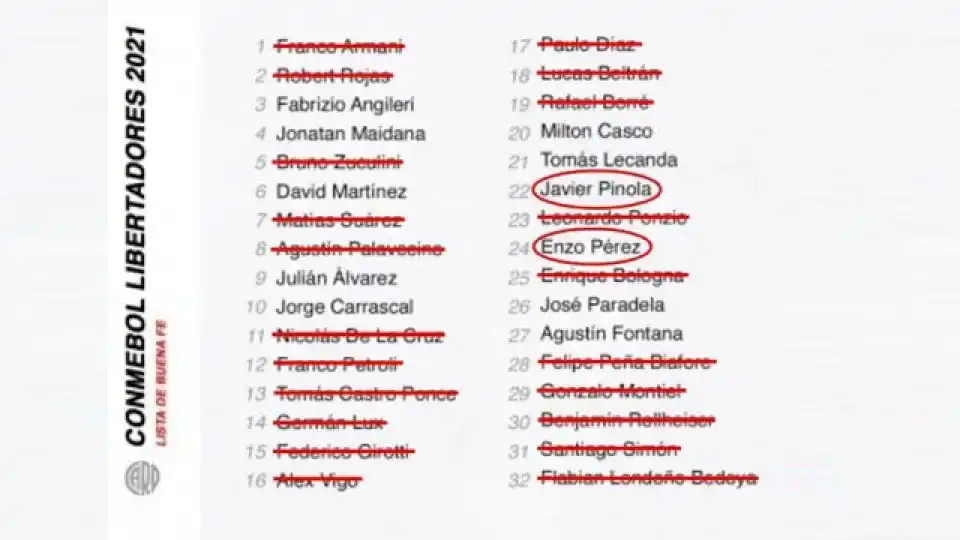 River, además, todavía no sabe si podrá sumar a la lista un arquero (Leonardo Díaz) y encima tendría la baja de Enzo Pérez, quien no pudo terminar el Superclásico ante Boca por una contractura muscular.