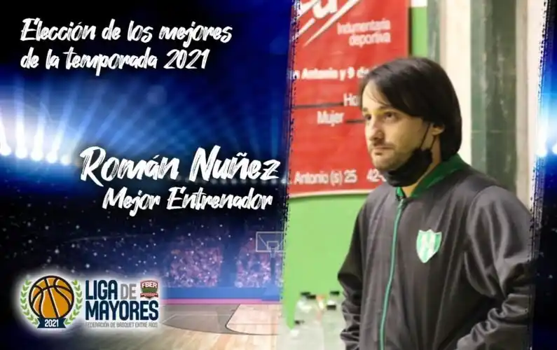 El DT del Centro Bancario Gualeguay, Román Nuñez, fue elegido como el Mejor Entrenador de la temporada 2021 de la Liga Provincial Masculina de Mayores tras su excelente campaña al frente del equipo gualeyo, que en la actualidad lidera la serie final por 2 a 0 sobre el Club Atlético Paracao.