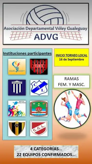 Todos estos equipos ingresarían al certamen con cuatro categorías y hay ya 22 equipos confirmados ante una gran expectativa ya que esta es una disciplina deportiva que tiene muchos adeptos en Gualeguay y su zona de influencia.
