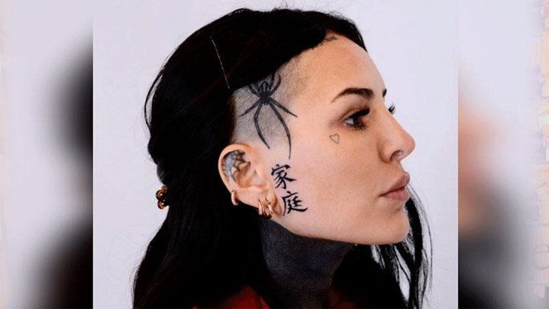 La cantante se fue rápidamente a visitar a su amigo tatuador y le pidió que le hiciera esas extrañas inscripciones. Eligió tatuarse en chino la palabra familia justo debajo del enorme tatuaje de una araña que tiene en la cabeza. Una clara señal de amor y alegría por la recuperación de su madre.