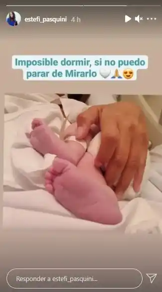 "Imposible dormir si no puedo parar de mirarlo", escribió Estefanía en Instagram Stories, junto a una dulce postal de los pies de su hijo, a pocas horas de llegar al mundo.