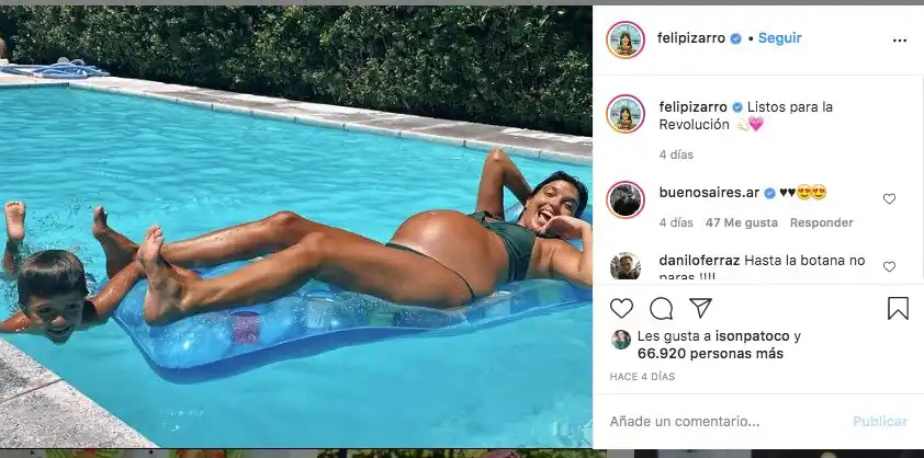 Pizarro publicó una foto muy tierna, que permite divisar con claridad el avance de su pancita, con un crecimiento precioso del vientre, que denosta la inminente llegada del bebé. En la postal, la cocinera aparece retozando en una colchoneta inflable en una piscina, con una sonrisa de oreja a oreja y con su hijo Ramón muy cerquita.