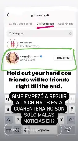 Vicky Braier, más conocida como "Juariu" , mostró la prueba en sus Stories. Finalmente, la esposa de Nico Vazquez le devolvió el follow a la China, lo que indicaría que están más cerca de reconciliarse