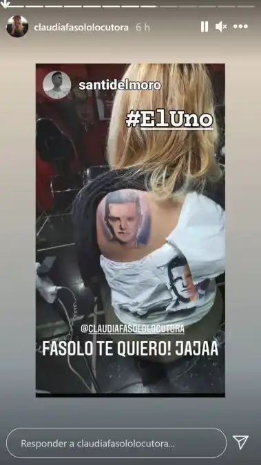 Horas más tarde, Santiago del Moro compartió una Instagram Story de Claudia en donde se ve el tattoo y agradeció el gesto: "Fasolo te quiero! Jajaa", escribió el conductor sobre la imagen.