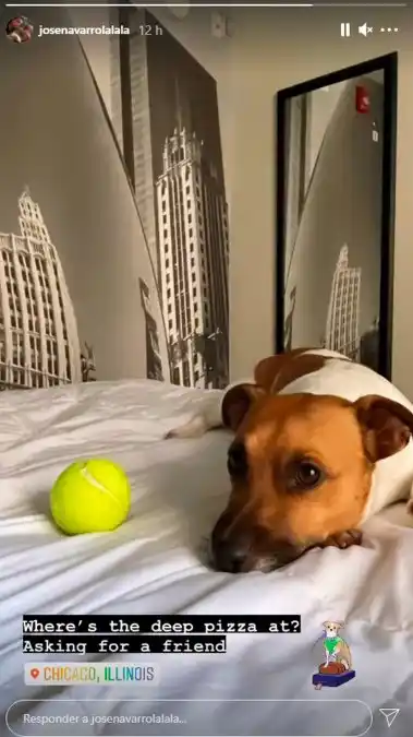 Aunque no subió ninguna postal familiar ni con Gastón, José puso en sus historias una foto con el perro de la pareja que está geolocalizada y cuya ubicación es justamente "Chicago, Illions".