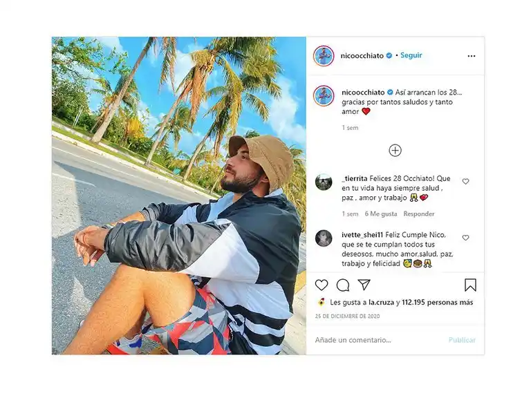 A Nico Occhiato nunca le gustó cumplir años. Nació un 25 de diciembre de 1992. "Es malísimo cumplir el día de Navidad. Soy una persona a la que nunca le gustó su cumpleaños pero no por sumar edad, sino porque la fecha queda desteñida por Las Fiestas. No soy de esos que esperan que los saluden... ¡Debe ser por la fecha de mierda que me tocó para nacer!", contó entre risas Nico Occhiato, conductor de "Todo puede pasar", el programa de Canal 9 que todas las noches, a las 23, entretiene a grandes y chicos. Sin embargo, aclaró: "Siempre celebré en familia y me sentí acompañado. De hecho este es el primer año que no lo paso en Buenos Aires. Solía irme para Año Nuevo, pero esta vez se dio la chance de viajar antes y con Flor no lo dudamos".