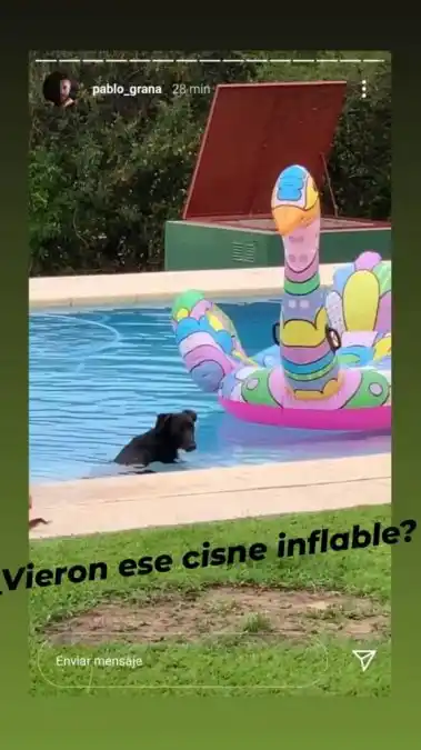 Fue el perfil @chusmeteando1 quien mostró imágenes que comprueban que la joven está en la casa del humorista: "Vieron ese cisne inflable", escribió junto a una captura de Story en la casa de Granados.