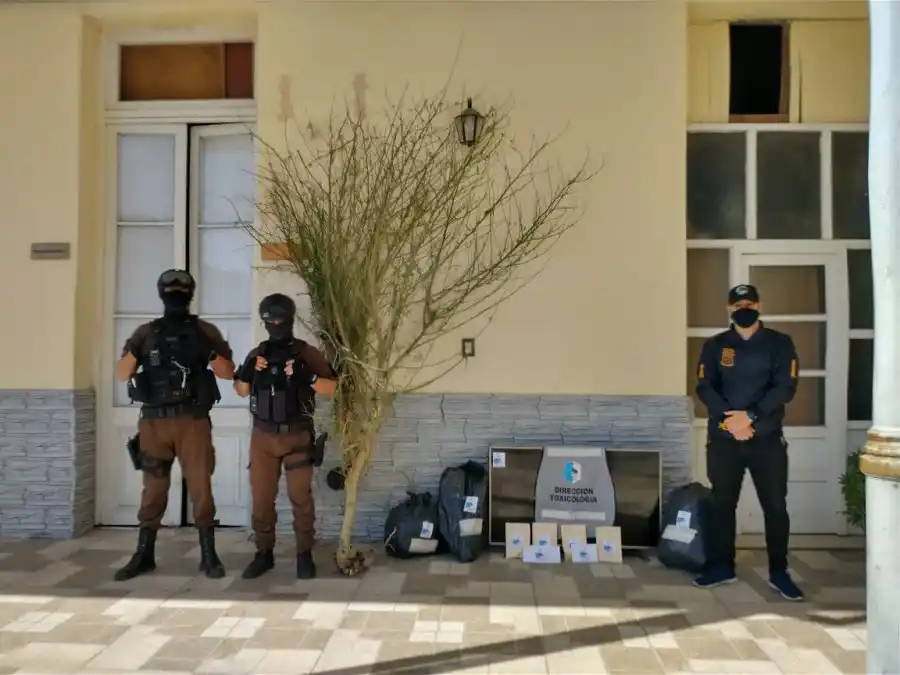 Personal de la División Toxicología, contando con el apoyo del G.E.P.E.R., procedieron bajo Mandamiento del Juzgado de Garantías, a realizar un allanamiento en Barrio Defensa Costera, con RESULTADO POSITIVO. En el lugar, se identificaron a tres personas, dos mayores y un menor y a la DETENCIÓN de una masculino mayor de edad. Además, se secuestró, 01 teléfono celular, 01 tv Smart de 50 pulgadas, 01 planta de marihuana con altura de 3,40 metros, con pesaje de 7,550 kg., 01 planta de marihuana con altura de 2,20 metros, con pesaje de 2,890 kg., 01 bolsa de nylon conteniendo marihuana en forma de pelota con pesaje de 25 gramos, 01 bolsa de nylon conteniendo picadura de marihuana con pesaje de 10 gramos, 09 cartuchos calibre 20 con munición plomo, marca ORBEA, 01 cartucho calibre 22, marca OA, 2 cajitas de papel para armar cigarrillos, dinero en efectivo por un total de $1290, 02 tallos de las plantas. Se comunicó al Fiscal en Turno, quedando el detenido por S/INFRACCION LEY 10566.- alojado en esta Jefatura previo ser examinado por el Medico policial.