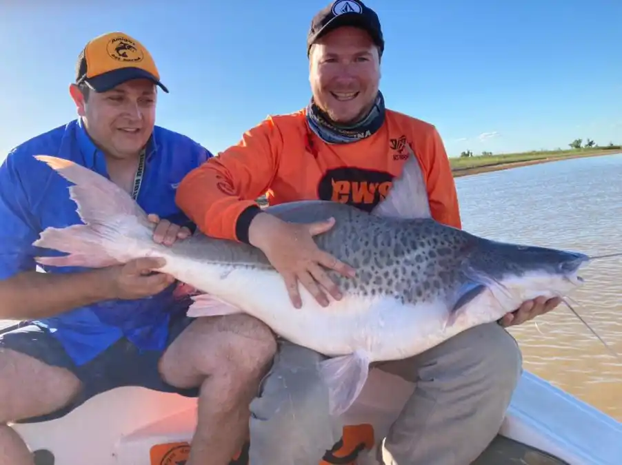 Luego de sacarse las fotos y los videos correspondientes, los pescadores permitieron que el pez vuelva al río porque se dedican a la pesca y devolución.
