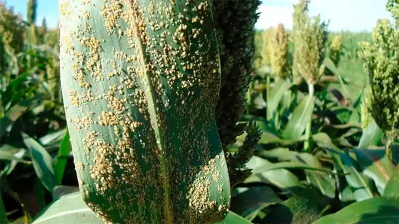 Durante las últimas semanas, se aparecieron varios casos de ataques de pulgones en las hojas del cultivo de sorgo, en su mayoría pertenecientes al pulgón amarillo de la caña de azúcar (Melanaphis sacchari).