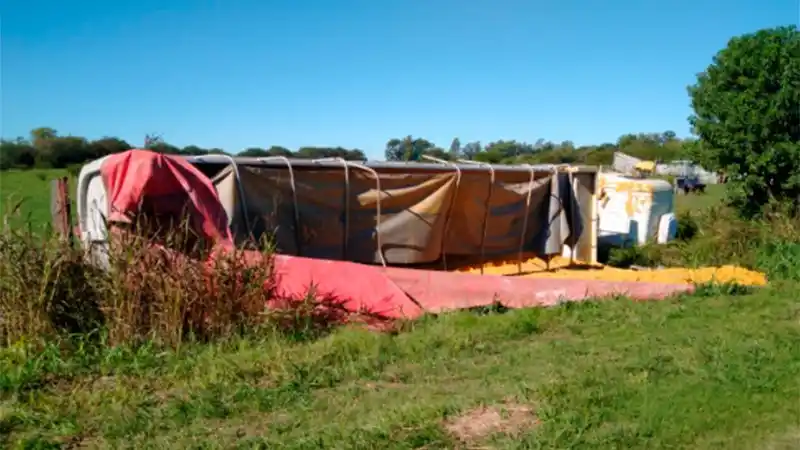 El siniestro vial ocurrió en la Ruta Provincial Nº 11, a la altura del kilómetro 141. La camioneta circulaba por la ruta, quiso entrar a un camino rural y fue impactada por el camión, que terminó volcando.