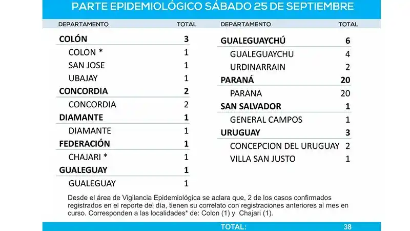 Corresponden a las localidades de: Colon (1) y Chajari (1).