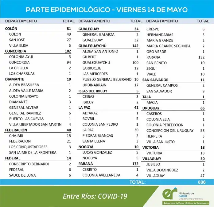 Éste viernes, se registraron 806 nuevos casos de coronavirus. De ese modo, son 71.087 los positivos confirmados en la provincia. Según el reporte del Ministerio de Salud , 16 departamentos sumaron positivos este viernes.