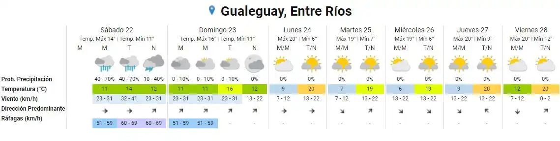 Gualeguay y zona tendrá un fin de semana de bajas temperaturas según las previsiones del Servicio Meteorológico Nacional (SMN).
