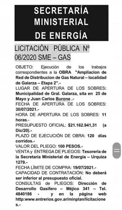 Durante su visita en octubre de 2020 el Gobernador Gustavo Bordet anunció la reactivación de la obra que busca ampliar la red de gas por una inversión de 21 millones de pesos.
