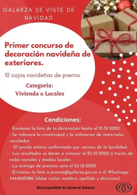 Desde la Municipalidad de General Galarza se está invitando a los vecinos a participar del "Primer Concurso de Decoración Navideña de Exteriores".