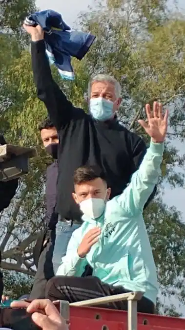 A Lisandro Martínez se lo veía feliz, estaba en su pueblo, y recorrió muchas calles arriba del autobomba de Bomberos Voluntarios que quizás el transitó cuando era niño, adolescente con su mochila cargada de ilusiones de que algún día podría ser un gran futbolista.