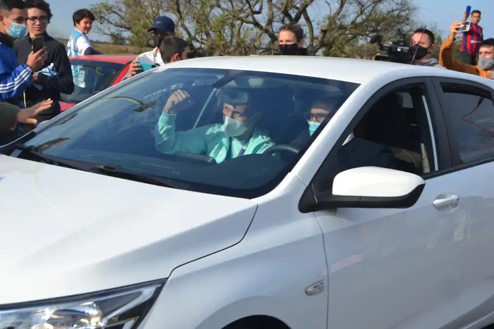 El sábado todos sufrimos ante el televisor hasta que el referé uruguayo Esteban Ostojich dió la pitada final. y como no íbamos a festejar los gualeguayenses si el obelisco se llenó de gente en poco minutos el mismo sábado. Como no íbamos a recibir a "Licha" Martínez si en Rosario los vecinos no se aguantaron para recibir a Messi tras haberse roto el maleficio de 28 años sin títulos. En nuestra ciudad también querían felicitar a su representante en la selección, darle una palmada, felicitarlo, sacarse una selfie y Lisandro pese a su evidente cansancio en el rostro se prestó gentilmente, con su barbijo puesto como indican las normativas sanitizante.