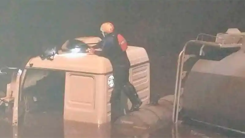 Intervinieron dos dotaciones de Bomberos Voluntarios de Gualeguaychú y otras dos de los Bomberos de Concepción del Uruguay con asistencia de personal policial y de Gendarmería. El camión vehículo que quedó en el lecho del río será extraído de las aguas en las próximas horas. Fuente: (Radio Máxima).